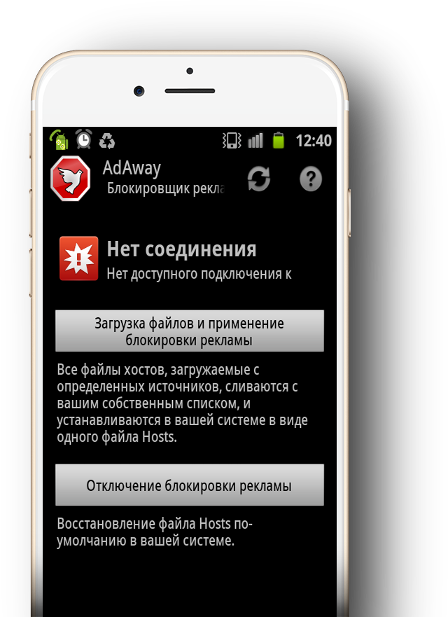 При первом запуске нужно будет подтвердить эту возможность, если же у планшета или телефона не настроены такие функции, работать приложение не будет. Интерфейс в AdAway интуитивен, знаний особых не потребуется, ведь всё полностью переведено на русский язык и понятно разъяснено. Сразу же стоит выбрать пункт, предполагающий загрузку с сервера приложения файлов hosts, которые и будут отвечать за удаление рекламы с вашего экрана. После одной перезагрузки AdAway начнёт блокировку нежелательных ресурсов в интернете уже в автоматическом режиме. Если вдруг понадобится временно или постоянно вновь вернуть показ рекламы, отдельная настройка есть и для этого.